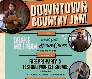Featuring: Drake Milligan with special guest Jason Cross, and a special FREE pre-party at Festival Market Square, with performance from Michigan native Audrey Ray!