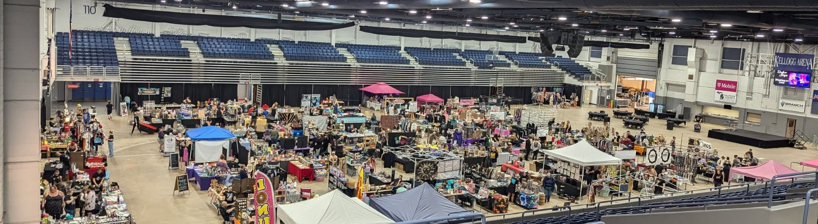 The Kellogg Arena consists of over 30,000 sqft with can be used as one open area or divided via an operative ceiling drop curtain into two areas. The arena side consisting of 22,000 sqft (100′ x 220′) and the exhibition hall side consisting of 8,360 sqft ( 38′ x 220′ ). Refer to the Arena Rental Structure 2024 regarding rental rates.